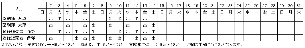 | インターネット販売の医薬品販売時間(薬剤師または登録販売者が常駐している時間) | 毎週月曜日~土曜日 9:00~18:00 |