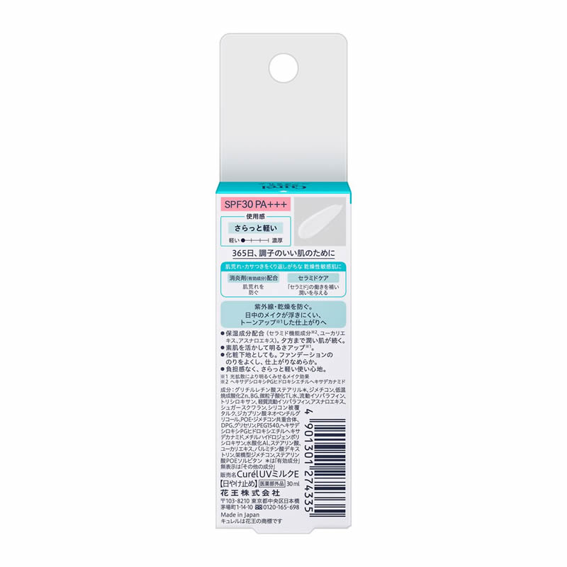 紫外線・乾燥から肌を守る。消炎剤配合で肌荒れを防ぐ。セラミドケア※1できる肌きれい見せベース。●保湿成分(セラミド機能成分※2、ユーカリエキス、アスナロエキス)配合。夕方まで潤い続く。●素肌を活かして明るさアップ(光拡散によるメイク効果)●化粧下地としても●負担感の無い、さらっと軽い使い心地。※1セラミドの働きを補い潤いを与える※2ヘキサデシロキシPGヒドロキシエチルヘキサデカナミド【医薬部外品】