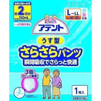 新機能引き込みラインで尿を素早く引き込んであふれモレを防ぎます。逆戻りが少なく、表面さらさら。おなかまわりにやわらかくフィットするからしめつけにくく、快適なはき心地。脚まわりのゴムの伸縮性が高いので、片手でするっとはけます。全面通気性シート採用。消臭加工。1枚入りの極小パック。