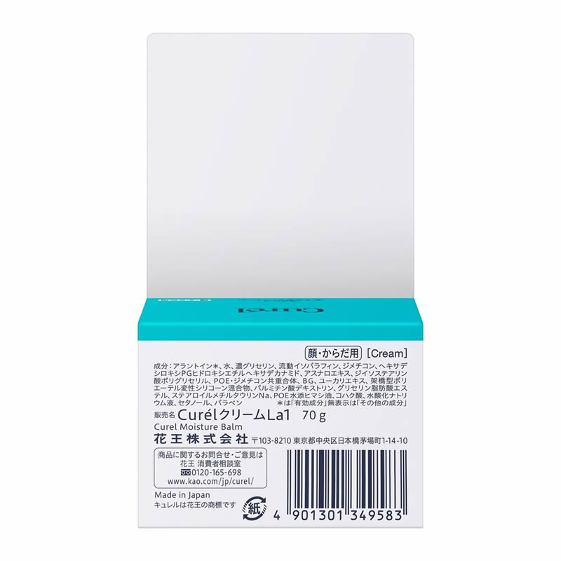 成分:アラントイン*、水、濃グリセリン、流動イソパラフィン、ジメチコン、ヘキサデシロキシPGヒドロキシエチルヘキサデカナミド、アスナロエキス、ジイソステアリン酸ポリグリセリル、POE・ジメチコン共重合体、BG、ユーカリエキス、架橋型ポリエーテル変性シリコーン混合物、パルミチン酸デキストリン、グリセリン脂肪酸エステル、ステアロイルメチルタウリンNa、POE水添ヒマシ油、コハク酸、水酸化ナトリウム液、セタノール、パラベン     *は「有効成分」無表示は「その他の成分」