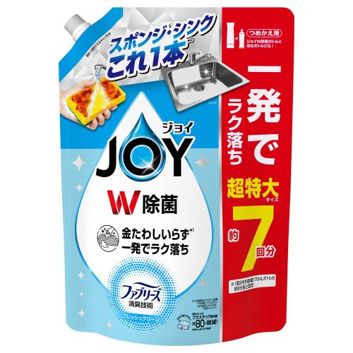 ●金たわしいらず。(※1)●一発でラク落ち。●スポンジ・シンクこれ1本。(※2)●2つの除菌成分でスポンジ除菌。●ファブリーズ消臭技術フレッシュクリーンの香り。●ジョイW除菌ボトルと逆さボトルにも。●閉めて保存できるキャップ付き。●丸めて捨てやすい。●液性…中性。※1…P&G調べ(グリル汚れ)。汚れの度合いによります。※2…油汚れについて。
