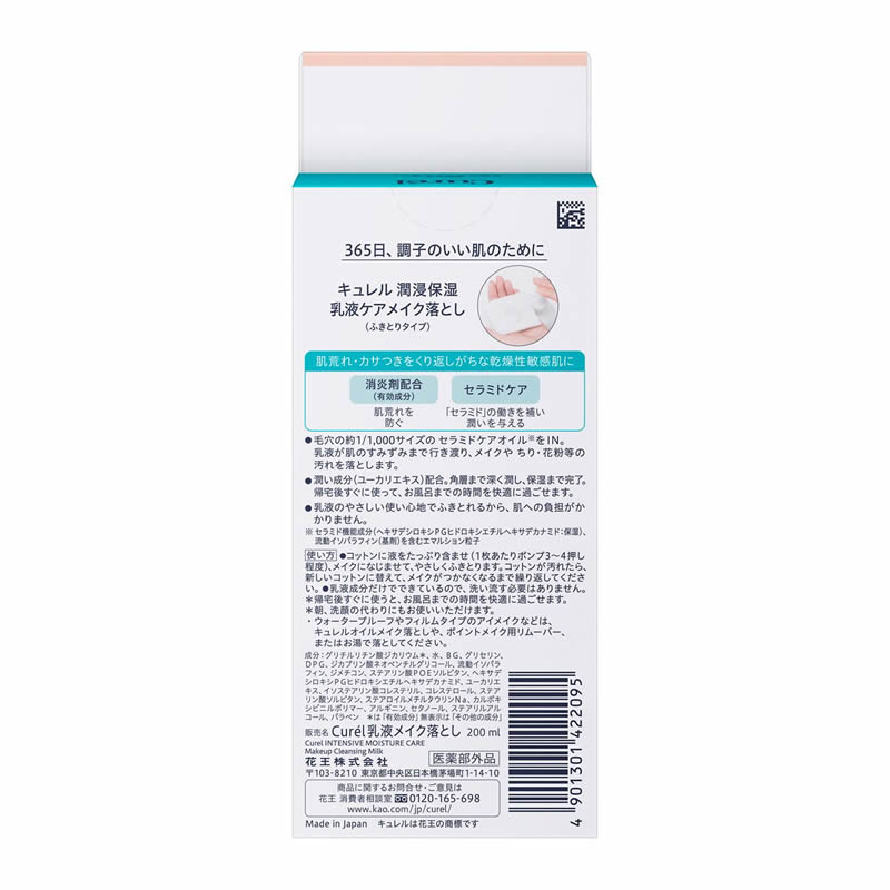 ●毛穴の約1/1000サイズのセラミドケア※1オイル※2をIN。乳液が肌のすみずみまで行き渡り、メイク汚れを落とす。ふきとりメイク落とし。※1「セラミド」の働きを補い、潤いを与える※2セラミド機能成分(ヘキサデシロキシPGヒドロキシエチルヘキサデカナミド)(保湿)を含む流動イソパラフィン(基剤)●消炎剤配合。肌荒れを防ぐ●潤い成分(ユーカリエキス)配合。角層まで深く潤し、保湿まで完了(医薬部外品)