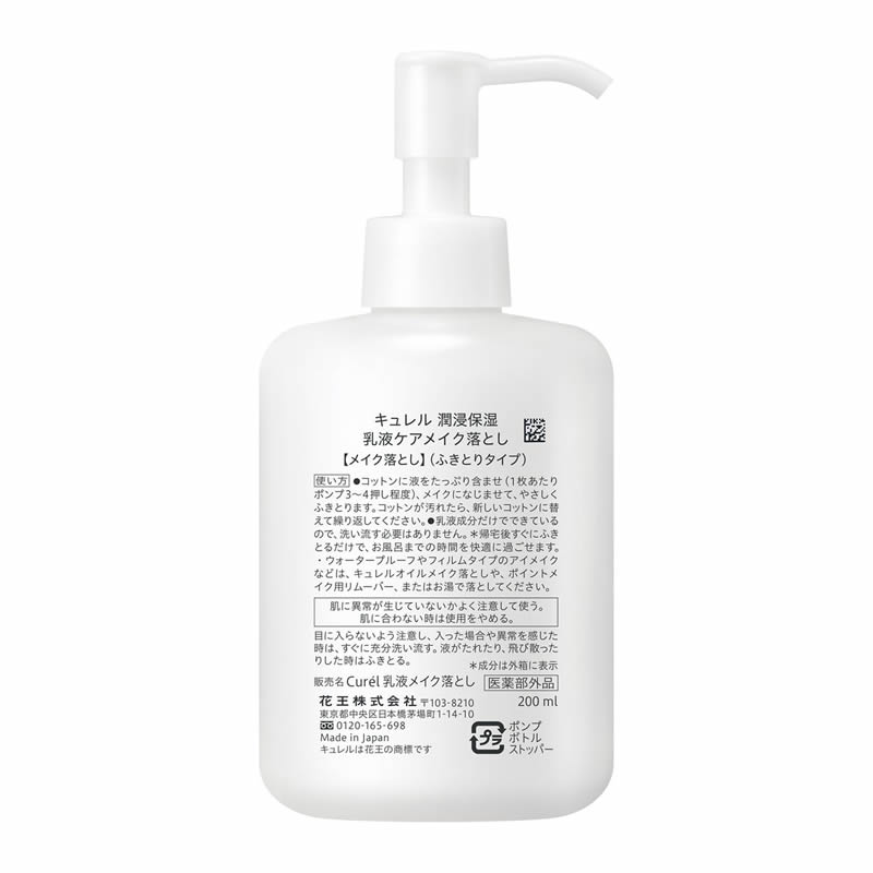 ・ウォータープルーフやフィルムタイプのアイメイクなどは、キュレルオイルメイク落としや、ポイントメイク用リムーバー、またはお湯で落としてください。