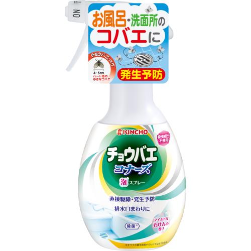 お風呂・洗面所などの水回りで見かけるいやなチョウバエを徹底退治!殺虫+忌避。マイルドな石けんの香り。