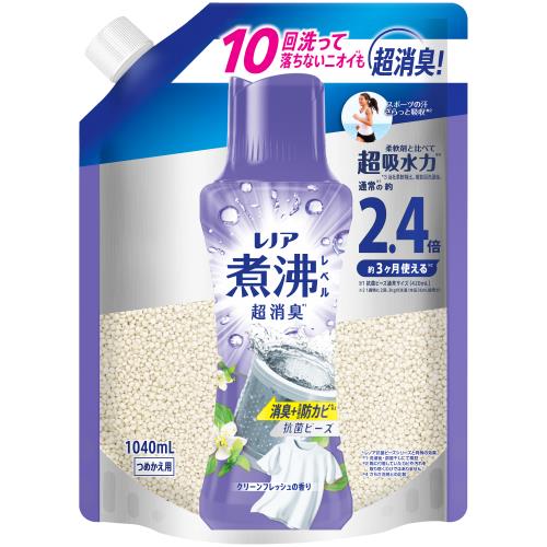 ●衣類の煮沸レベル消臭(※1)●洗濯槽の防カビ(※2)まで●洗剤・柔軟剤では落ちないニオイに(※3)●衣類が消臭フィルターに●エリそでの黄ばみブロック(※4)まで●12週間消臭力が続く(※5)●柔軟剤と比べて超吸水力(※6)※1…洗濯後・部屋干しにて検証。※2…既に付着していたカビや汚れを取り除くわけではありません。※3…当社洗剤・当社柔軟剤比。※4…皮脂を再現した成分と綿の生地の模擬実験にて検証。※5…保管状態で。※6…当社柔軟剤比。複数回洗濯後。