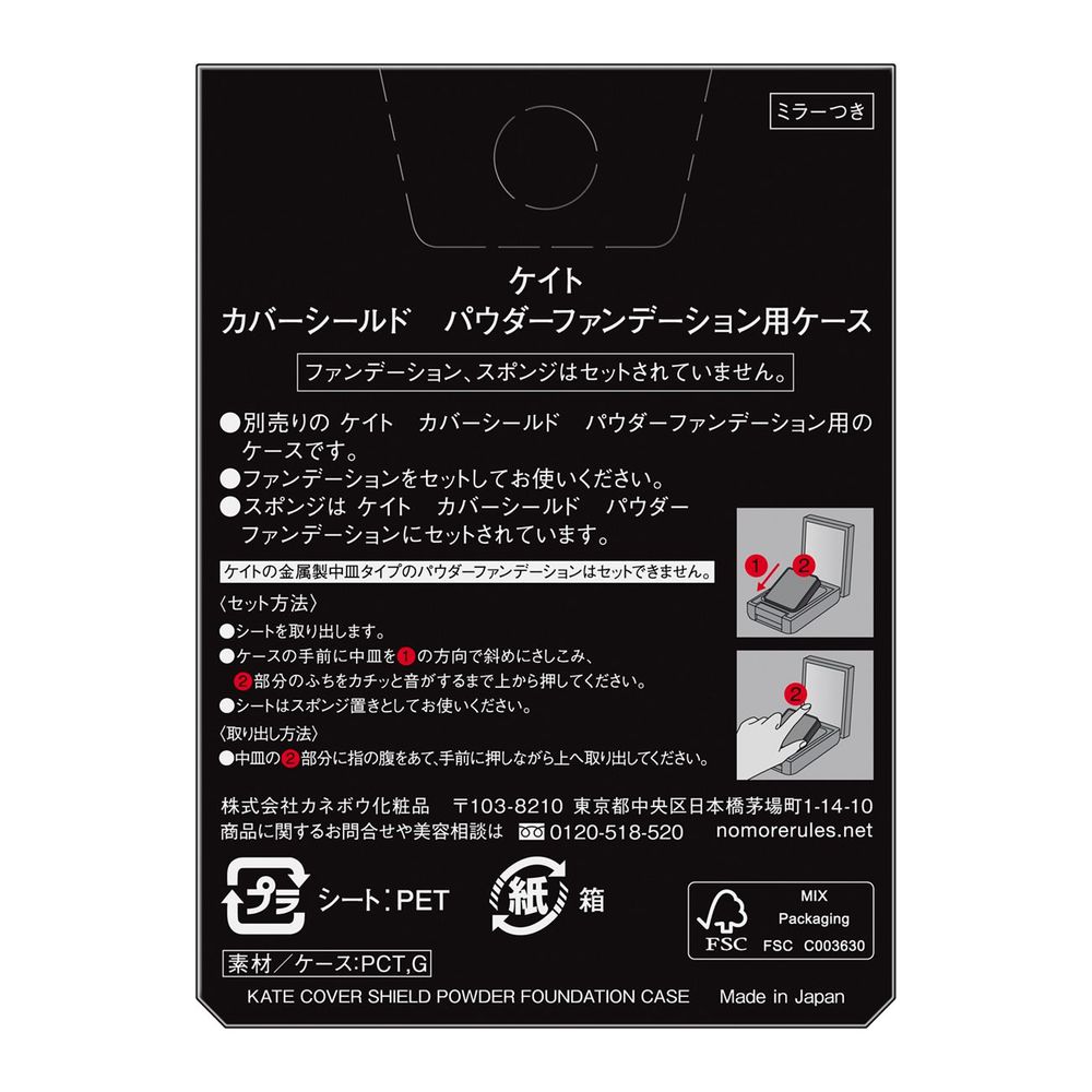 別売りの ケイト カバーシールド パウダーファンデーション用のケース ■ファンデーションをセットしてお使いください ■ケイトの金属製中皿タイプのパウダーファンデーションはセットできません ■スポンジはケイト カバーシールド パウダーファンデーションにセットされています ■ミラーつき ■持ち運びやすいコンパクトな容器形状 ■1種
