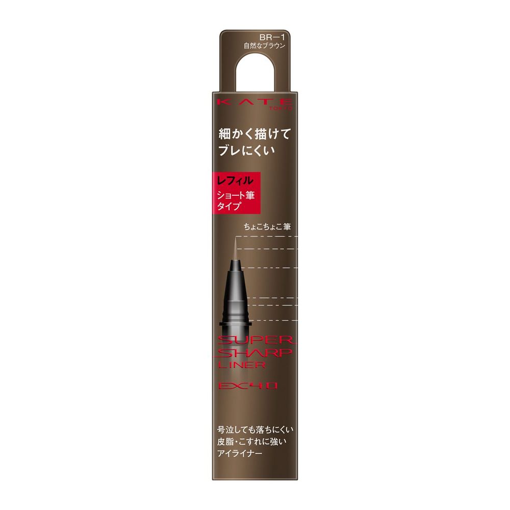 超極細ラインがちょこちょこ描けて失敗しにくい 毛先が短いショート筆タイプのリキッドライナーレフィル。号泣しても落ちにくく、皮脂・こすれに強い。●お湯オフタイプ ●一日中色持続 ●ケイト スーパーシャープライナーEX4.0のホルダー本体部、またはスーパーシャープライナー用ホルダーにセットして使う付け替えタイプです。筆先ごと付け替えられます。●全5色 BK-1(漆黒ブラック) BR-1(自然なブラウン) BR-2(ビターブラウン) GY-1(ダークグレージュ) BR-6(ダークブラウン)