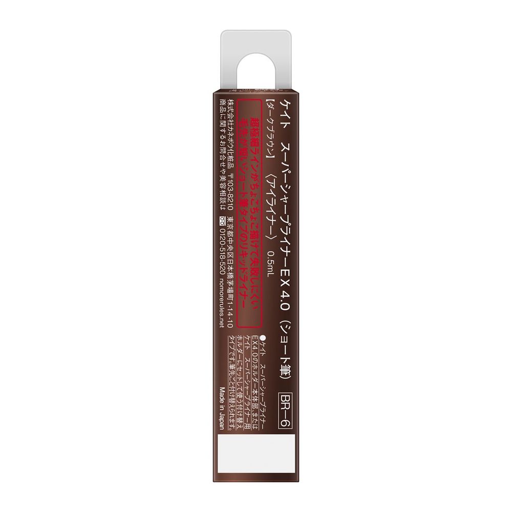 超極細ラインがちょこちょこ描けて失敗しにくい 毛先が短いショート筆タイプのリキッドライナーレフィル。号泣しても落ちにくく、皮脂・こすれに強い。●お湯オフタイプ ●一日中色持続 ●ケイト スーパーシャープライナーEX4.0のホルダー本体部、またはスーパーシャープライナー用ホルダーにセットして使う付け替えタイプです。筆先ごと付け替えられます。●全5色 BK-1(漆黒ブラック) BR-1(自然なブラウン) BR-2(ビターブラウン) GY-1(ダークグレージュ) BR-6(ダークブラウン)