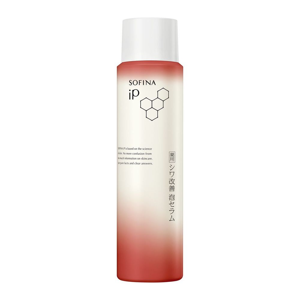 新世代※1シワ改善の泡の美容液。首より上まとめてシワ改善。有効成分ナイアシンアミドが真皮まで浸透。目元・口元だけでなく、おでこや頬のシワまで改善。毛穴より小さい炭酸※泡がシワの凹凸に密着。 ※1ソフィーナiPにおいて ※炭酸ガス(噴射剤)