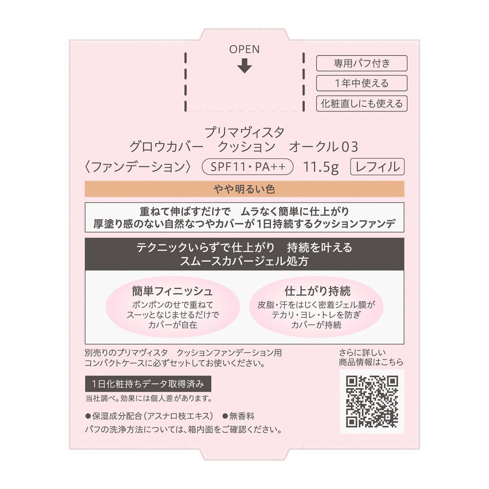 つやカバー仕上がりが簡単・持続するクッションファンデーション。重ねて伸ばすだけでムラなく簡単に仕上がり、厚塗り感のない自然なつやカバーが1日持続する。テクニックいらずで仕上がり、持続を叶える「スムースカバージェル処方」。簡単フィニッシュ:ポンポンのせで重ねてスーッとなじませるだけでカバーが自在。仕上がり持続:皮脂・汗をはじく密着ジェル膜がテカリ・ヨレ・トレを防ぎカバーが持続。