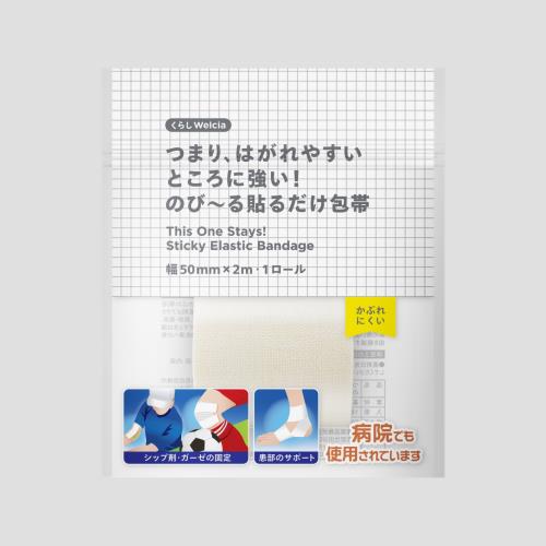 良く伸びて良くつく、貼るだけの簡単な包帯状テープです。粘着剤付なので巻き崩れもなく、良く伸びるので可動部位にもOK。