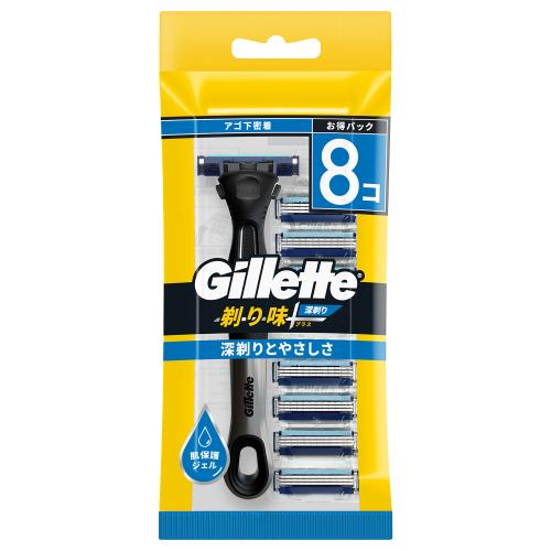 ●ジレット剃り味+プラス。●深剃り3つのお悩みに…アゴ下の密着感・繰り返し剃り・剃った後のひりつき感。●肌に密着ヘッド…40度首振りでアゴ下にもぴったりフィット。●コーティング刃…繰り返し剃りを防ぐ。●潤滑ジェル…潤滑成分がすべりをよくする。●肌保護ジェル。●使い捨てカミソリより刃い剃り味2、4倍長持ち。※ジレットカスタムプラスEXとの比較。●本体1コ、替刃8コ付。うち1コは本体に装着済。