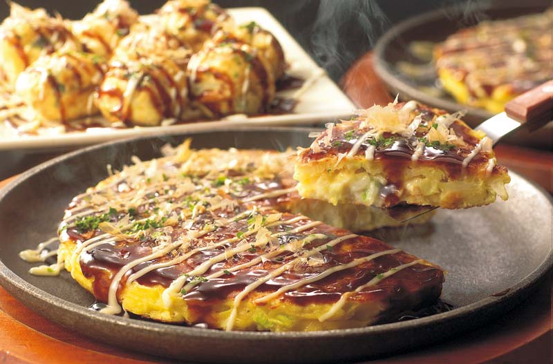 お好み焼豚玉220g×2、たこ焼(6個入)180g×3、濃厚ソース25g・ホワイトソース(マヨネーズ風味)10g×各5、かつお節1g・あおさ0.2g×各2