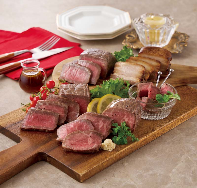 黒毛和牛(うちもも・マル・そともも)各100g、黒豚焼豚100g、ローストビーフソース100ml、レホール3g×3