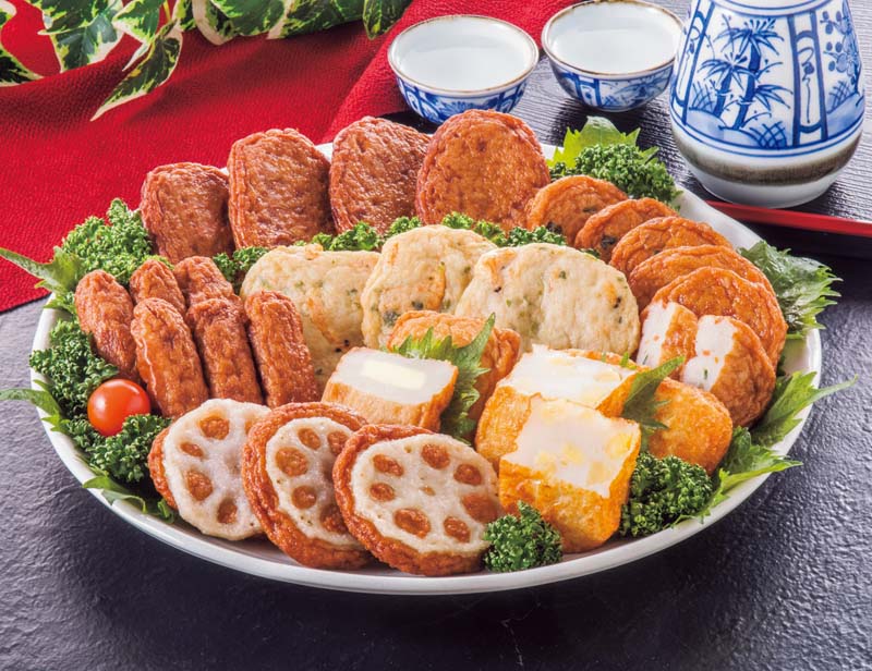 棒天6本、つけあげ天4枚、磯の香天・れんこん天各3枚、さつま芋天・チーズ天各2枚、野菜丸6枚