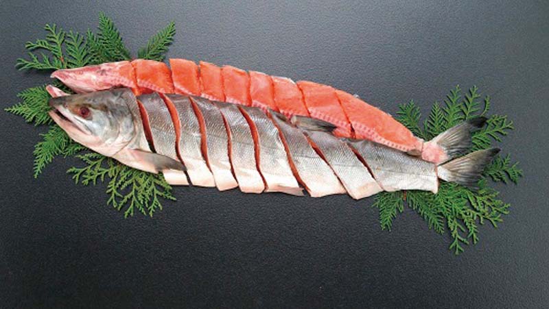 ボイルずわい蟹半剥き身(棒脚・爪・爪下・肩肉)合計700g(ロシア又はアメリカ産)、新巻鮭姿約1.4kg(6分割真空)(全て北海道にて加工)