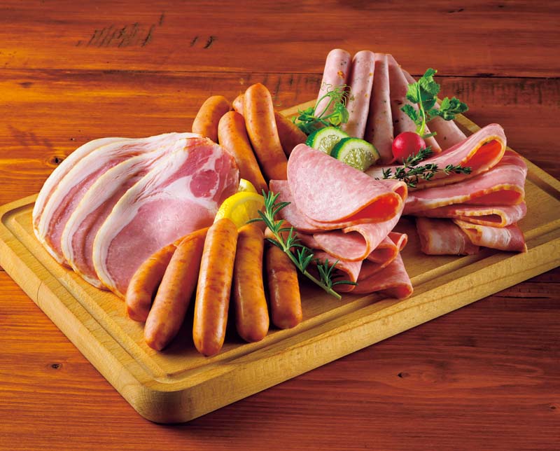 特級ロースハム100g・特級ベーコン90g・上級トマトリオナソーセージ110g・特級ボロニアソーセージ110g・ソフトサラミ120g、特級ウインナー(あらびき・ピリ辛)各140g