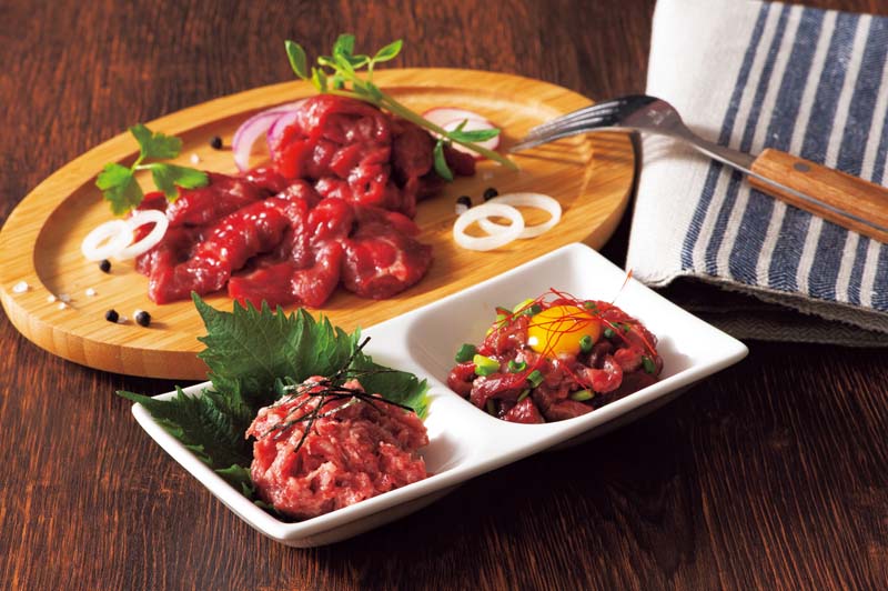 ふじ馬刺し(ユッケ50g・ネギトロ50g・上赤身80g)、馬刺しのたれ5ml・生姜3g×各3、ユッケのたれ10g