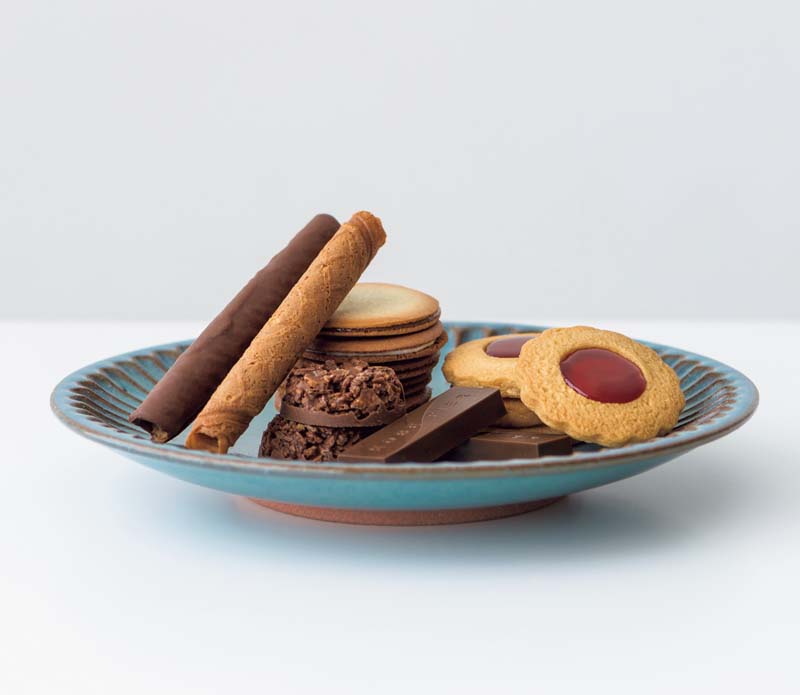 ゴーフル3枚(バニラ・ストロベリー風味・チョコレート)、ゴーフルオグーテ(抹茶)2枚、プティーゴーフルオグーテ(抹茶×3枚・紅茶×3枚)、パレオショコラ・パピヨット×各4、チョコレートパピヨット・ジャムトップクッキー・ゴーフルクランチ×各2、コウベピアー×3