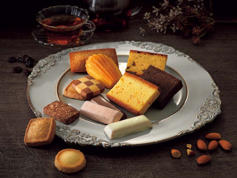 マドレーヌ・フィナンシェ×各3、オレンジケーキ・チョコレートケーキ×各2、ショコラバー(ミルク&ジャンドゥーヤ・ストロベリー&ミルククランチ・ホワイト&ベリークランチ)×各2、ラムレーズンケーキ、クッキー(ドミノ・カフェアマンド・ショコラアマンド・バニーユ)