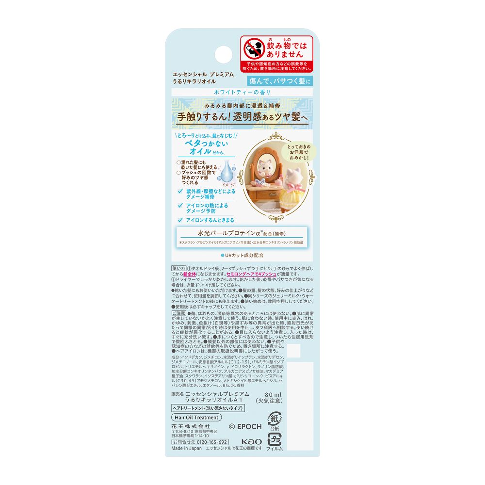 成分:イソドデカン、ジメチコン、水添ポリイソブテン、水添ポリデセン、ジメチコノール、安息香酸アルキル(C12-15)、パルミチン酸イソプロピル、トリエチルヘキサノイン、γ-ドコサラクトン、ラノリン脂肪酸、加水分解コンキオリンタンパク、アルガニアスピノサ核油、マカデミア種子油、スクワラン、イソステアリン酸、ポリシリコーン-9、ビスアルキル(C30-45)アモジメチコン、メトキシケイヒ酸エチルヘキシル、セバシン酸ジエチル、エタノール、BG、水、香料