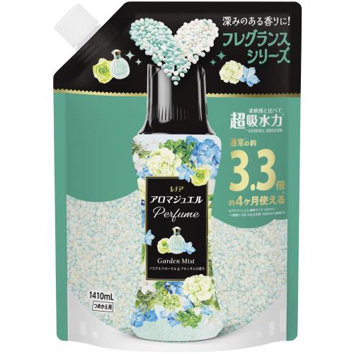 柔軟剤と比べて、超吸水力*&香り長続き2色の香水ビーズ。複雑で深みのある香り。柔軟剤より上質なフレグランスが香水よりやさしく、長く続きます。庭園の香りの香水をイメージ パステルフローラル&ブロッサムの香り:ブロッサムの繊細で自然な香りにシトラスのさわやかさが重なり、みずみずしい香りへ。お洗濯のはじめに入れるだけ!縦型・ドラム式どちらでもOK通常※の約3.3倍 約4ヶ月使える^※アロマジュエル通常サイズ(420mL)