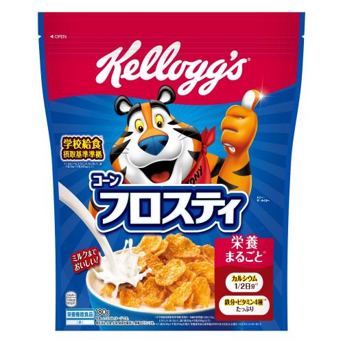 とうもろこしの粒を香ばしく焼き上げ、ほどよく砂糖をまぶした、サクサク食感のフレーク。お子様の成長を応援する栄養バランス満点のシリアル。学校給食摂取基準に準拠したビタミン・ミネラル(ビタミンA・B1・B2・C・カルシウム・鉄)が摂れる、栄養まるごと*1のシリアル。1/2日分のカルシウム*2、鉄・ビタミン4種たっぷり*3。栄養機能食品(鉄)。