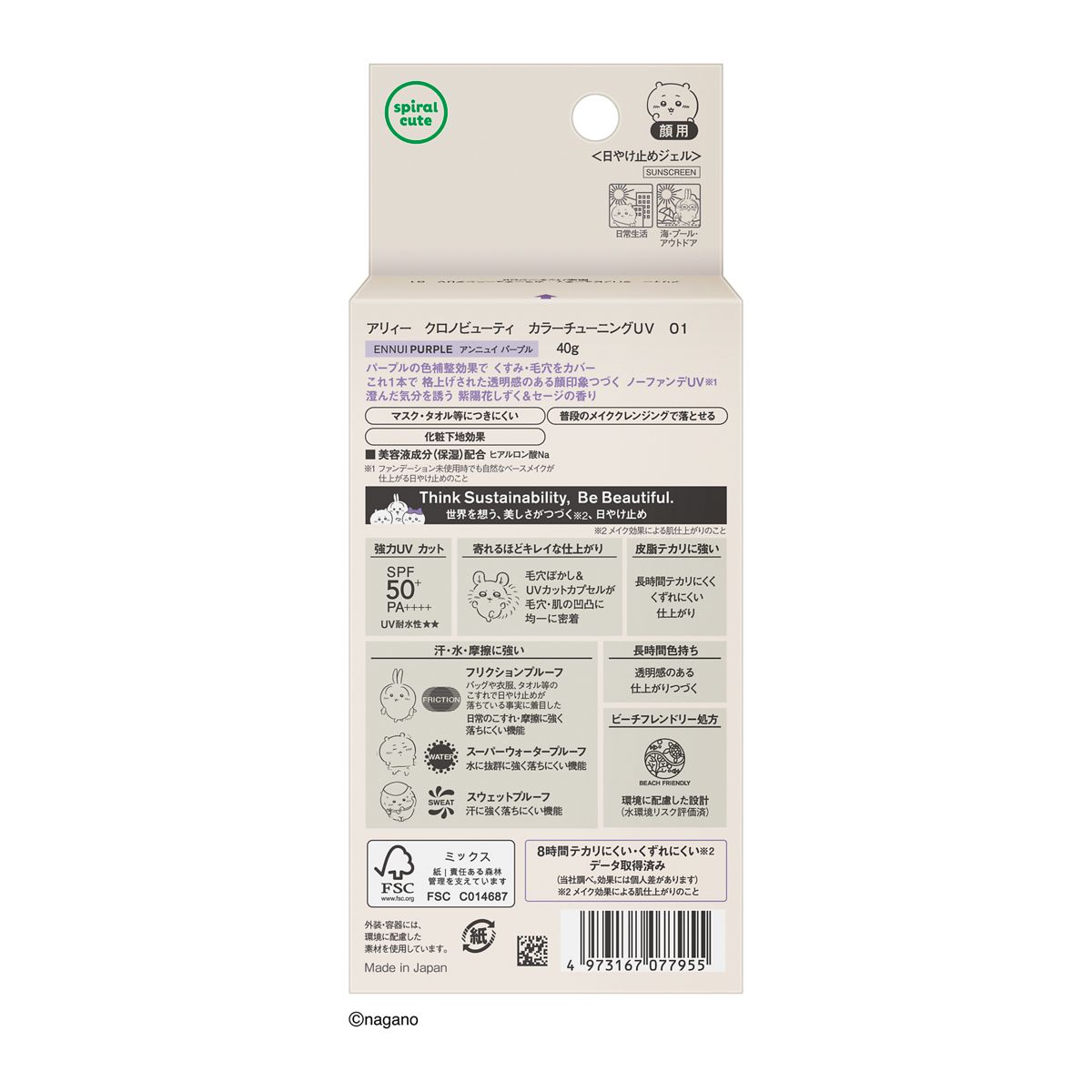 くすみ・毛穴をカバー ノーファンデUV*1 ちいかわ限定パッケージ *1ファンデーション未使用時でも自然なベースメイクに仕上がる日やけ止めのこと