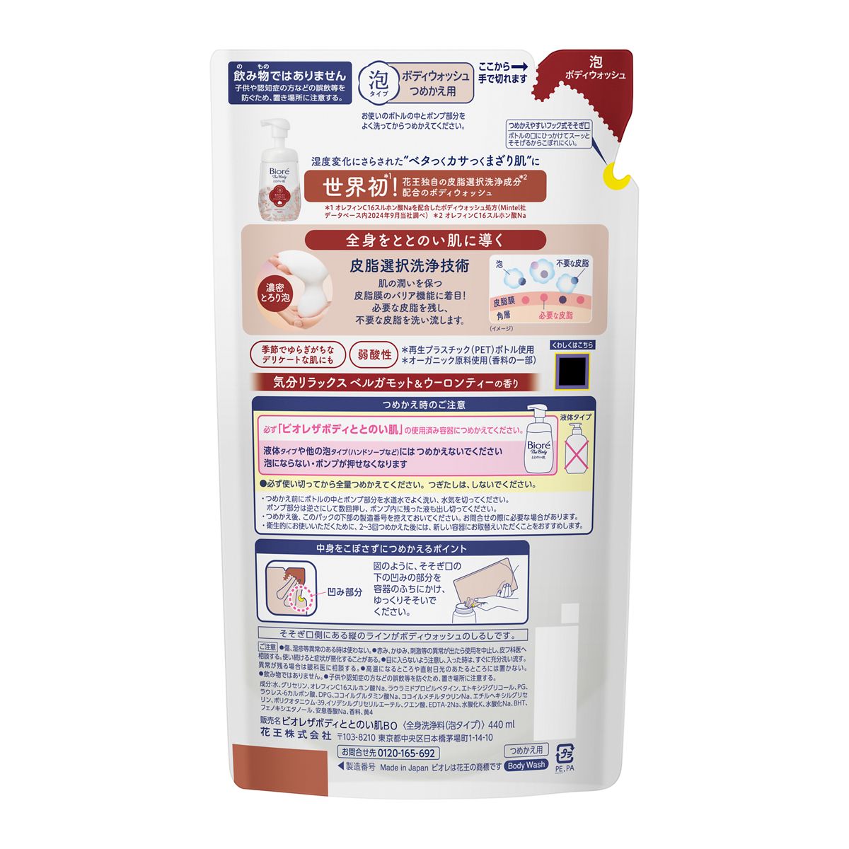 ビオレ ザ ボディ ととのい肌 泡タイプ ベルガモット&ウーロンティーの香り つめかえ用 440ml